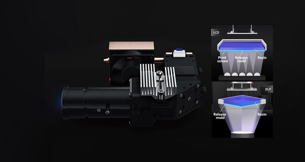 The core technology of Texas Instruments, software algorithm optimization, and the system’s built-in distortion compensation ensure that the optical-mechanical projection image is a regular rectangle. Compared with LCD, there is no heating of the printing screen, which does not affect the expansion rate of the resin, and the printing is more stable.
